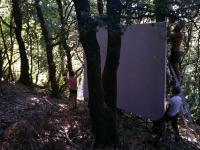 The festival ended with a procession. The wooden cinema screens that had been used during the week we brought to the village, where the bells of the church rang to annonce a screening and a bal.