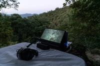 In his own words : “2120: 42°35’04.2″N 9°17’57.7″E” is a single-person site-specific sound installation developed during the artistic residency Providenza 2120 in the mountain forest of Pieve (Corsica) in August 2020 and inspired by sci-fi writer Alain Damasio’s concept of “intertime”, which suggests the possibility of receiving messages from the future.